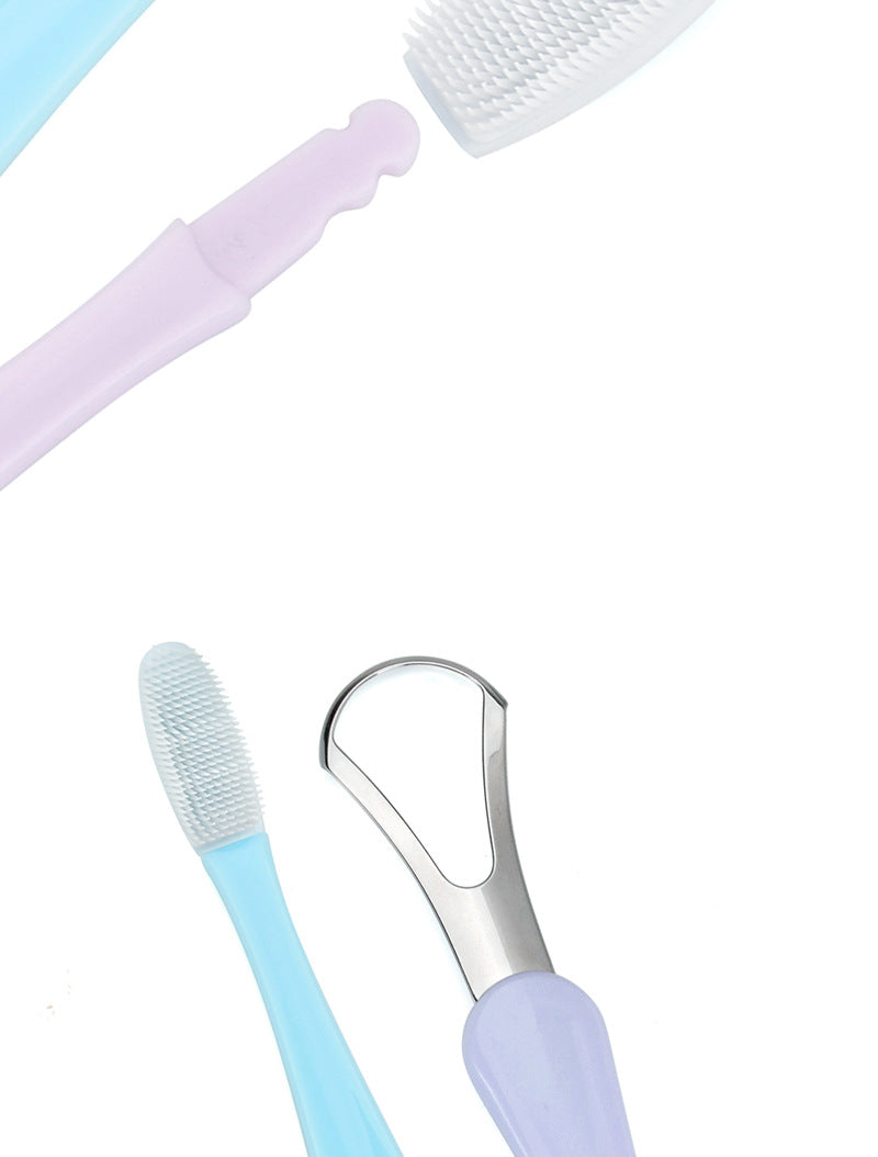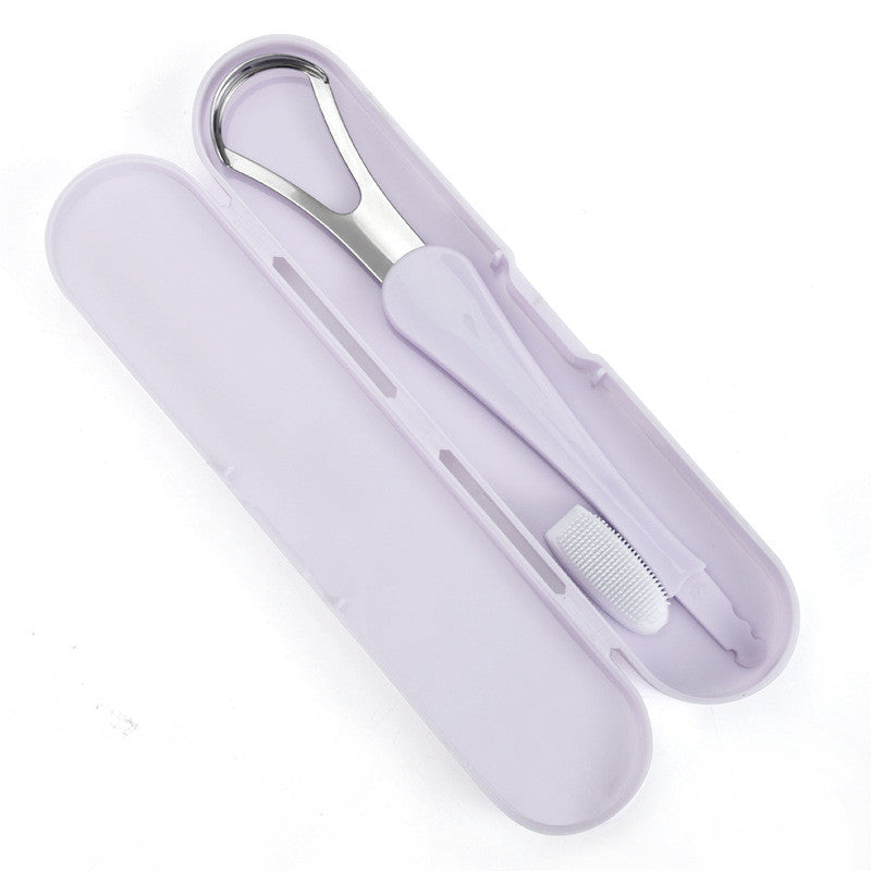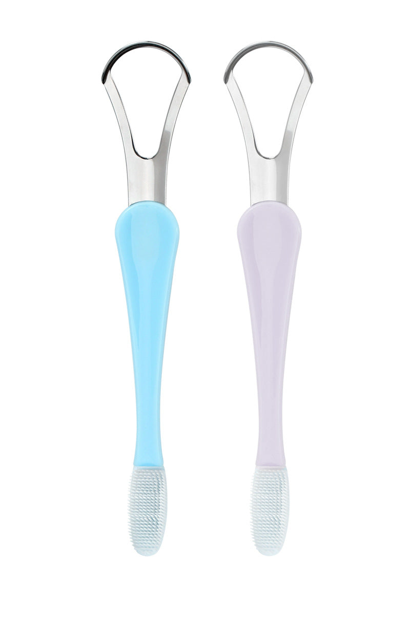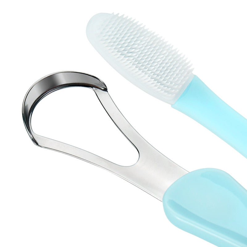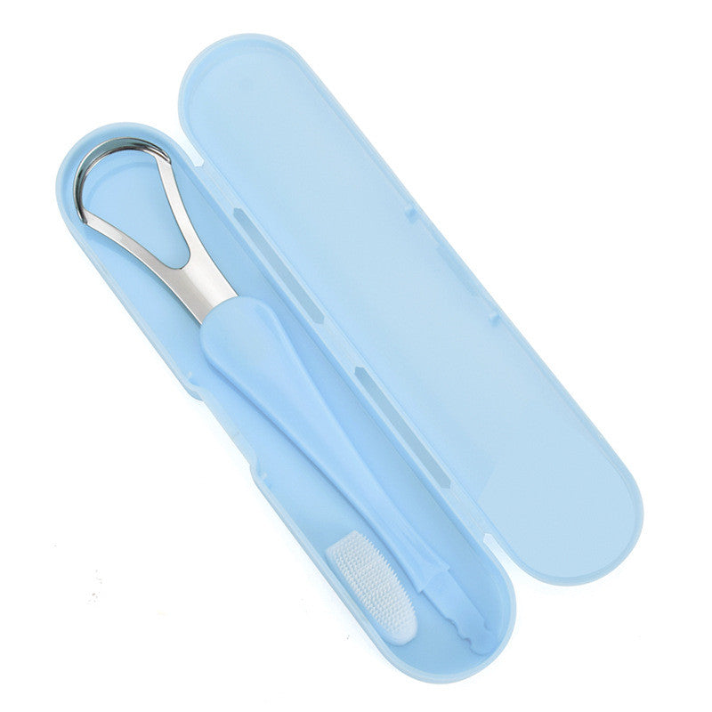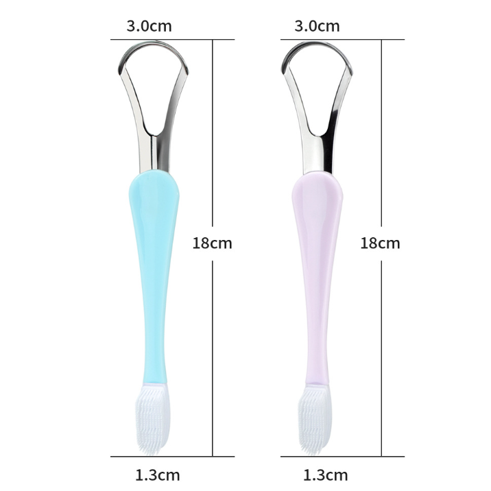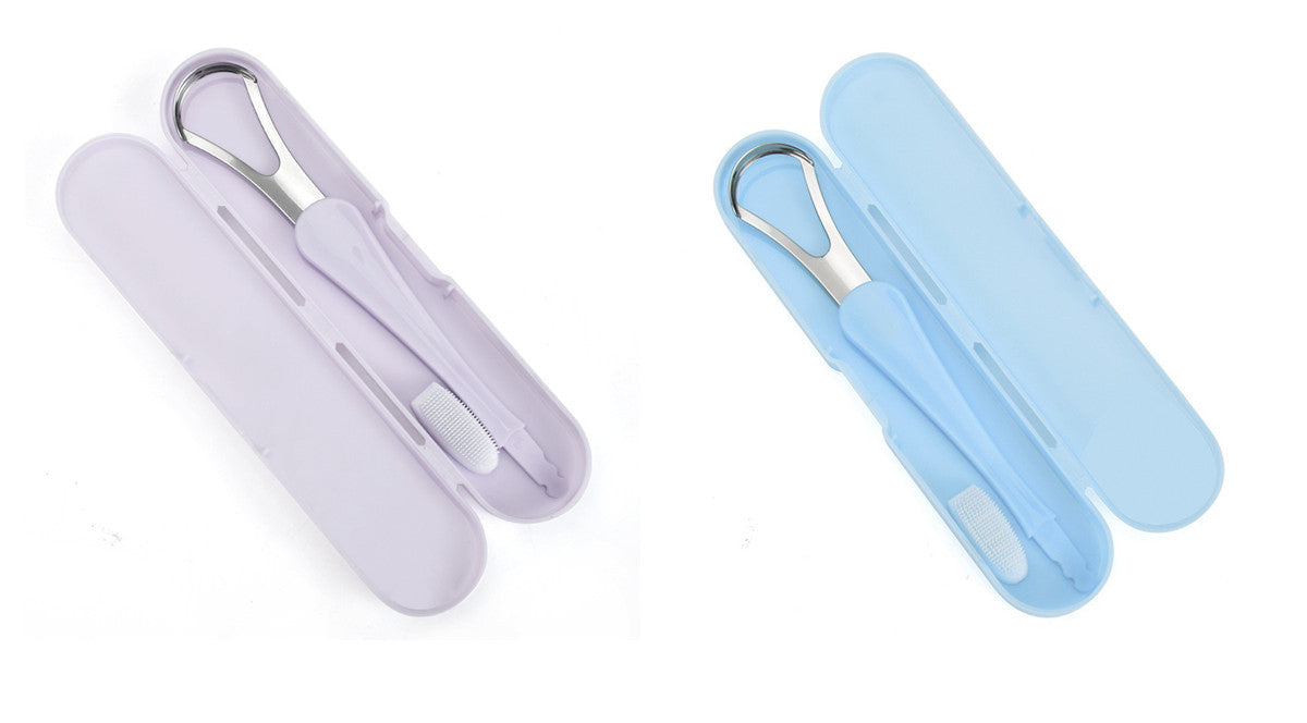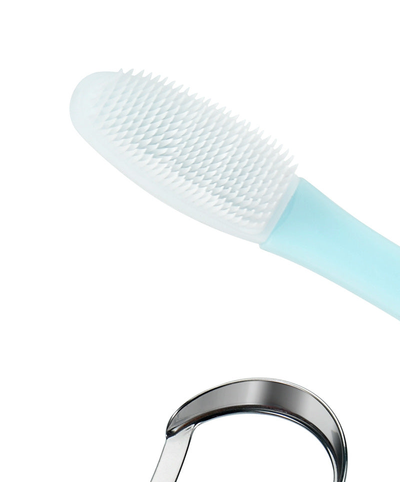 Stainless Steel Tongue W/ Toothbrush 2 in 1 Kit Cleaner Scraper Tool