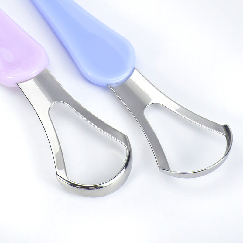 - Stick your tongue out, then scrape it by the concave side of the scraper gently from inside to tip. ""scraping"" off unwanted matter.