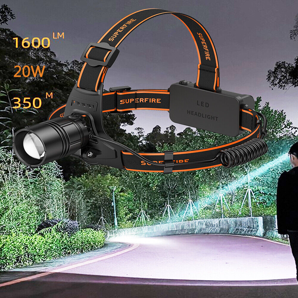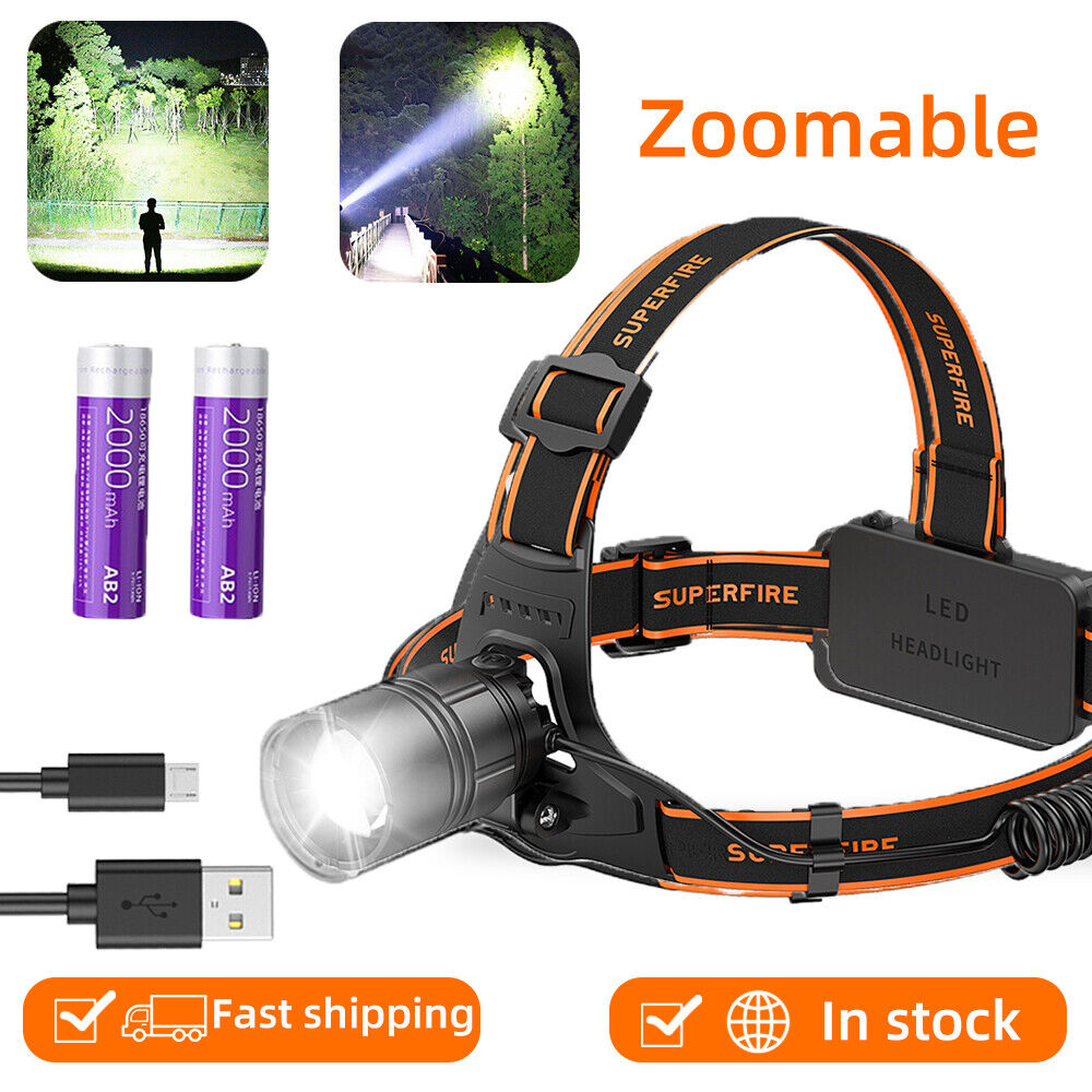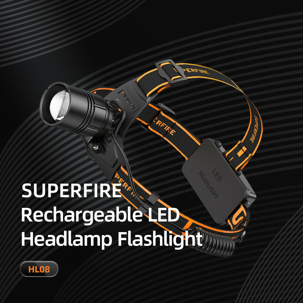 SUPERFIRE Headlamp Zoom Headlight flashlight Rechargeable 20W HL08