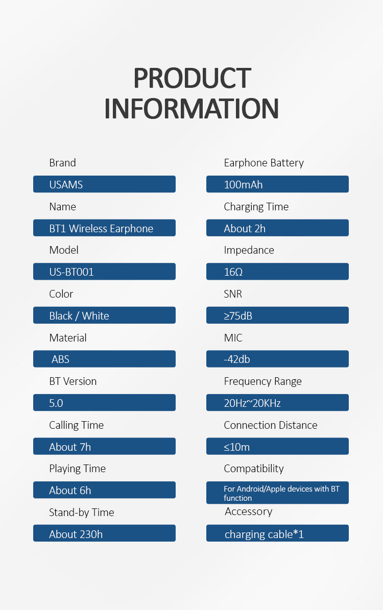 USAMS BT1 Wireless Earphone