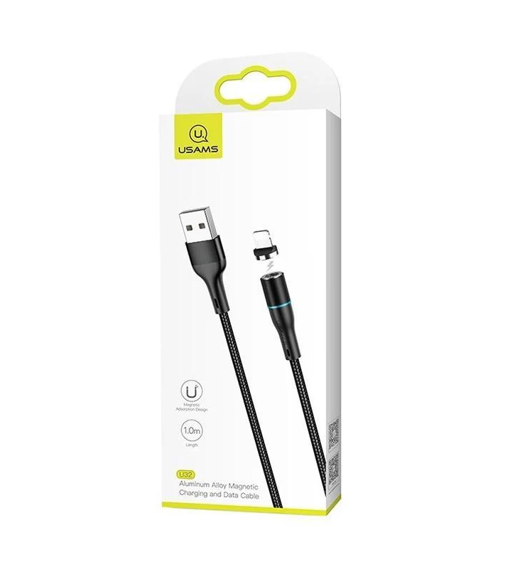 USAMS USB Magnetic Charging and Data cable for iPhone 1m Braided Strong Black