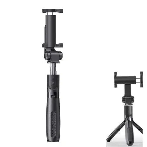 Tripod selfie stick with Bluetooth remote control function Compact size and lightweight, foldable and telescopic, easy to carry and use Can be used as a desktop stand or an outdoor selfie stick The mobile phone holder angle can be adjusted freely, allowing you to take photos as you like to meet different shooting needs Stainless steel telescopic rod, adjustable length, superb craftsmanship and stylish appearance Stable triangle support, durable and reliable Specification: Material: aluminum alloy+ABS+silicone Clamping size: 4-6.7 inches Maximum extension length: 70cm