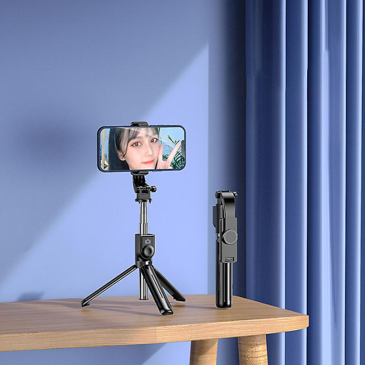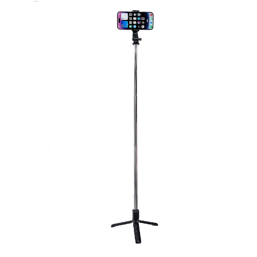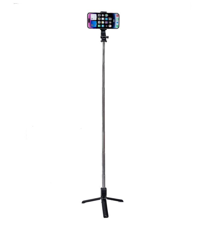 Selfie stick and tripod 2-in-1 design, great for group photos, adventure photographing, livestreamIt allows you to fold and take it to any placeEquipped with a mini Bluetooth remote control, easy to capture photos at your fingertipsThe phone clip is adjustable, which gives you the possibility to adjust your tool depending on the occasion, and you can rotate the selfie stick to select horizontal or vertical shooting mode to obtain the best-angle photosExtendable up to 103cm, it provides a substantial amount of space necessary for taking shots from far away Specification: Stretch length:103cmFolded length: 20cmExtended length of mobile phone clip: 60-85mmMaterial: ABS + AluminumBluetooth: 4.0 or aboveRemote control distance: 10mRemote control battery: 60mAh Package included: 1 x Selfie Stick Tripod Stand 1 x Wireless Bluetooth Remote Control 1 x Charging Cable